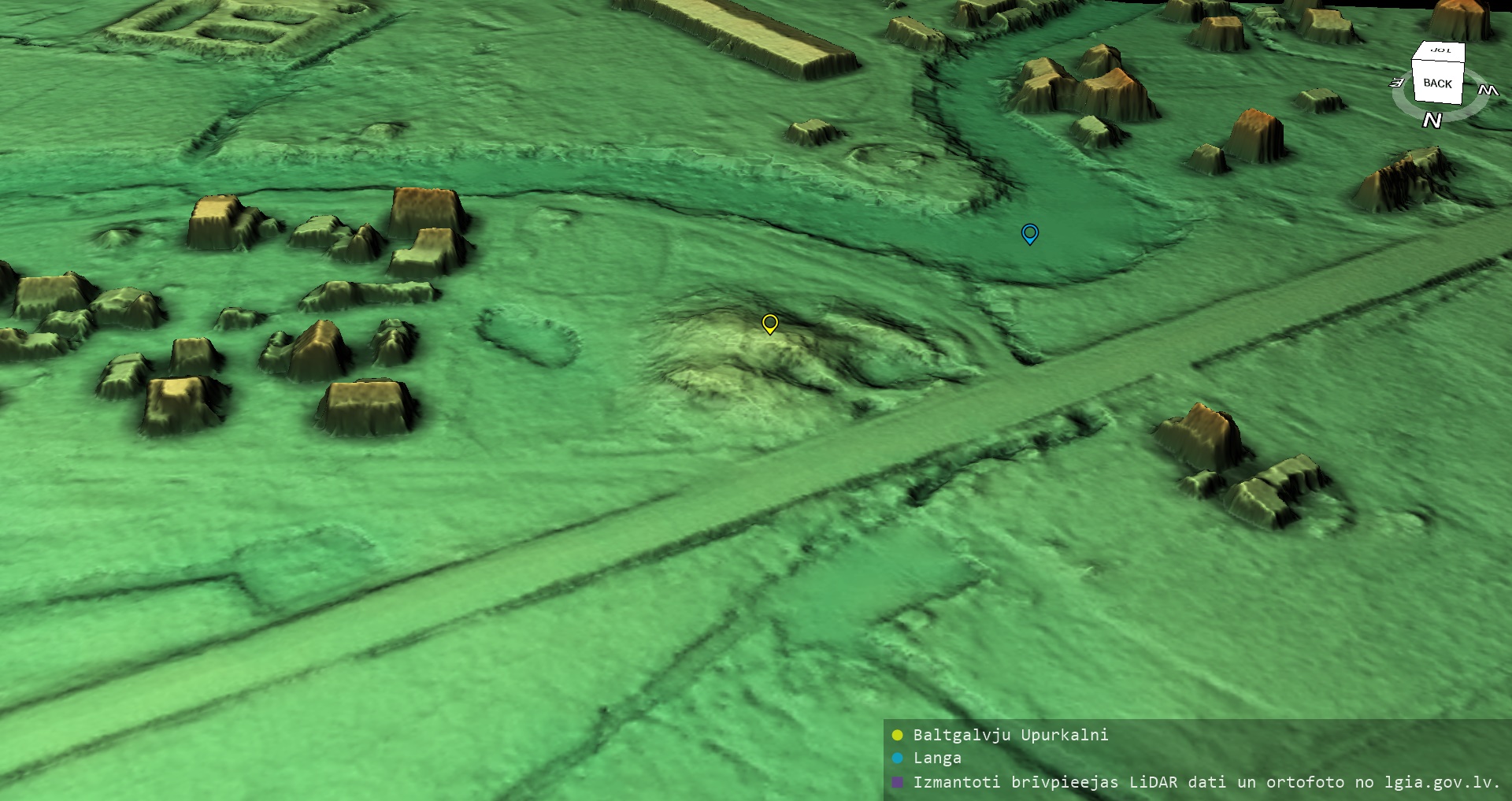 Latvijas pilskalnu 3D modeļi, kas veidoti no brīvpieejas LIDAR datiem LĢIA vietnē.