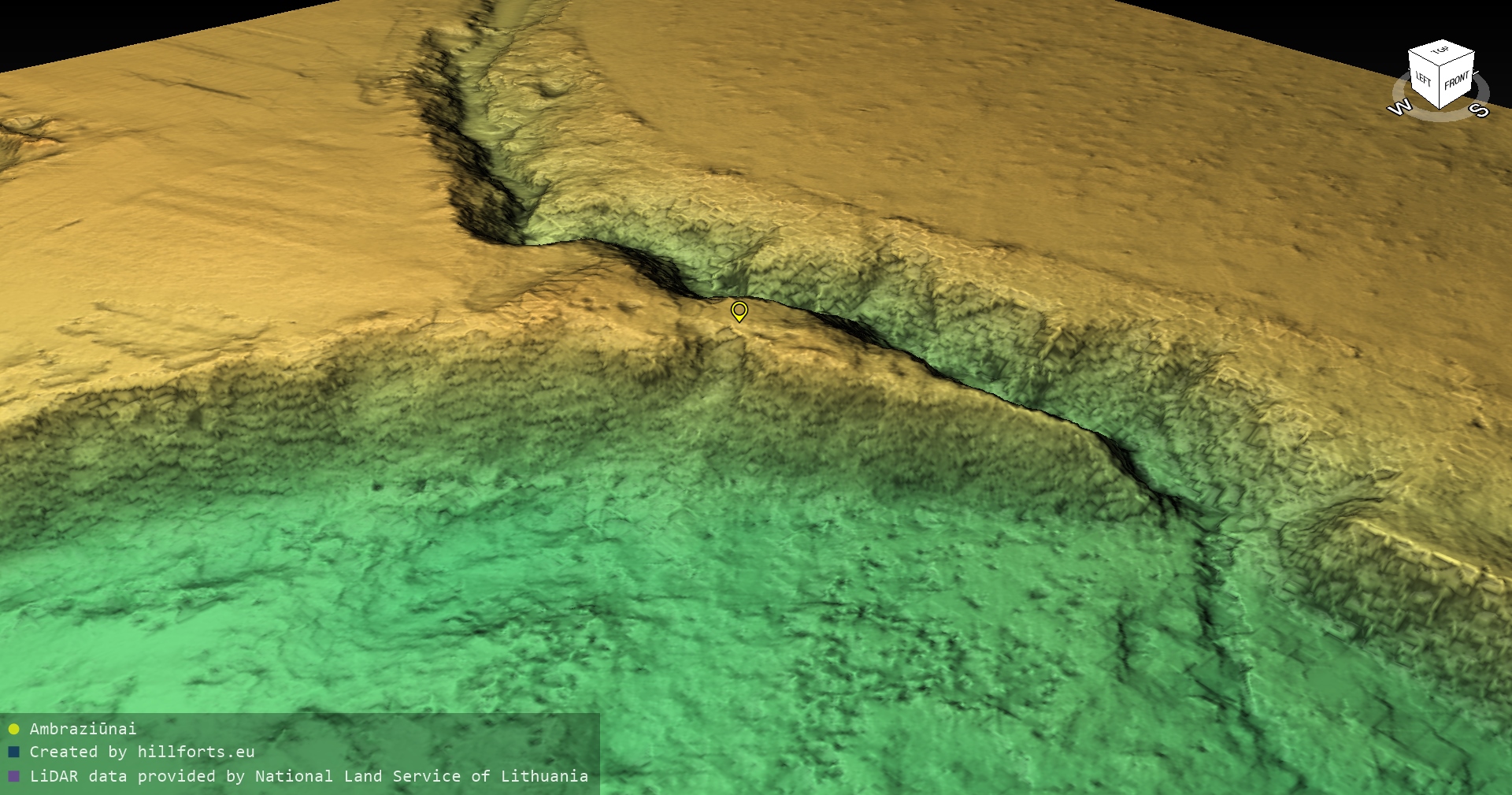 Latvijas pilskalnu 3D modeļi, kas veidoti no brīvpieejas LIDAR datiem LĢIA vietnē.