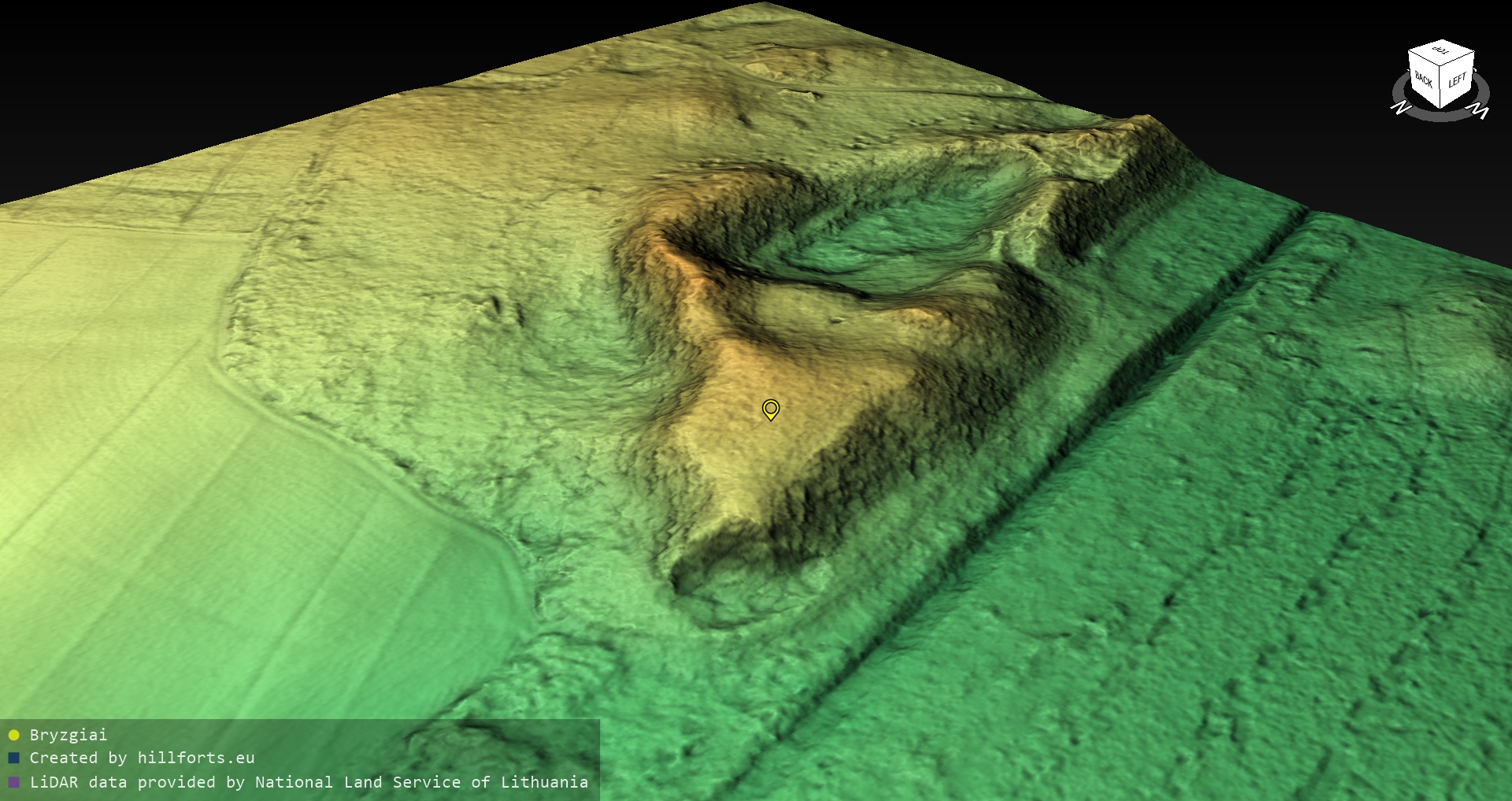 Latvijas pilskalnu 3D modeļi, kas veidoti no brīvpieejas LIDAR datiem LĢIA vietnē.