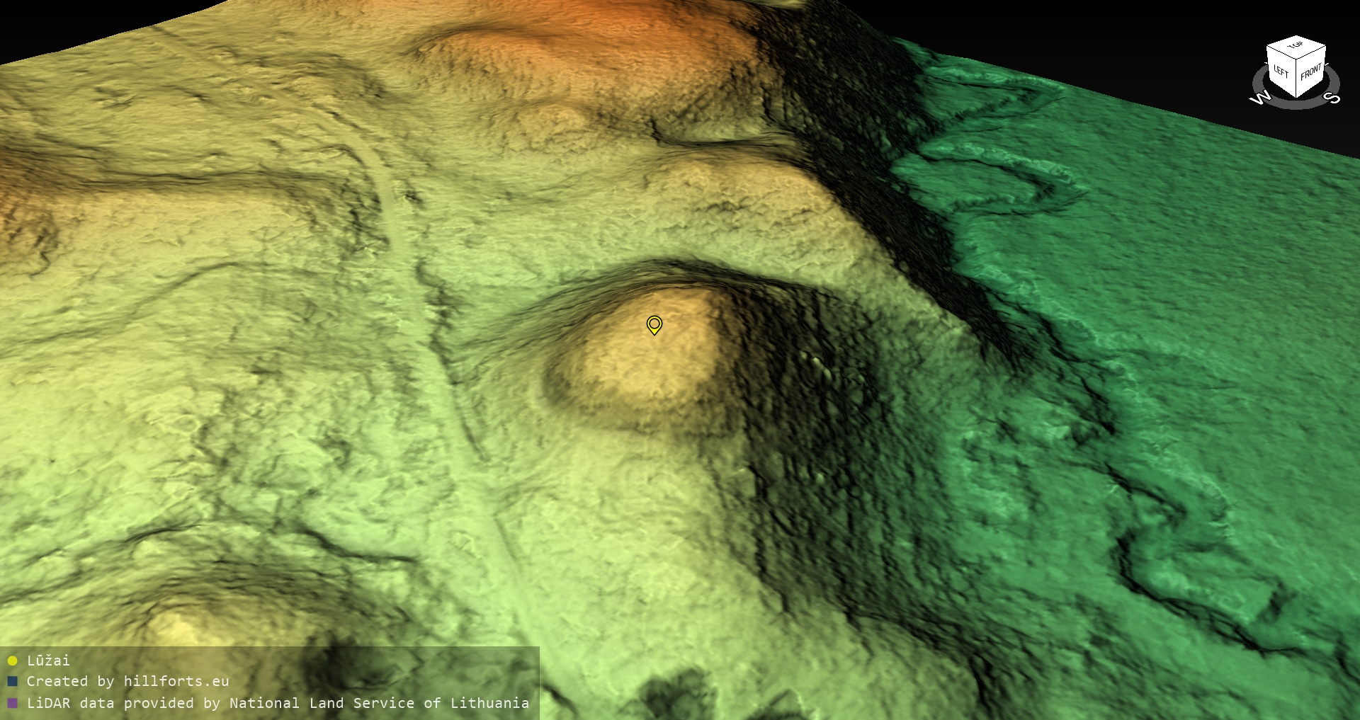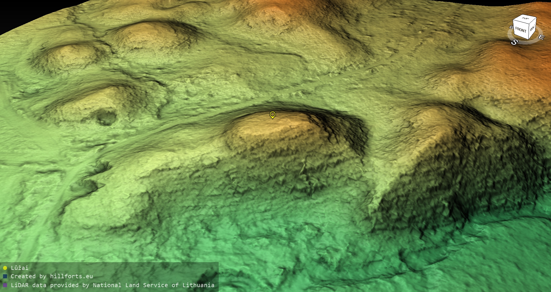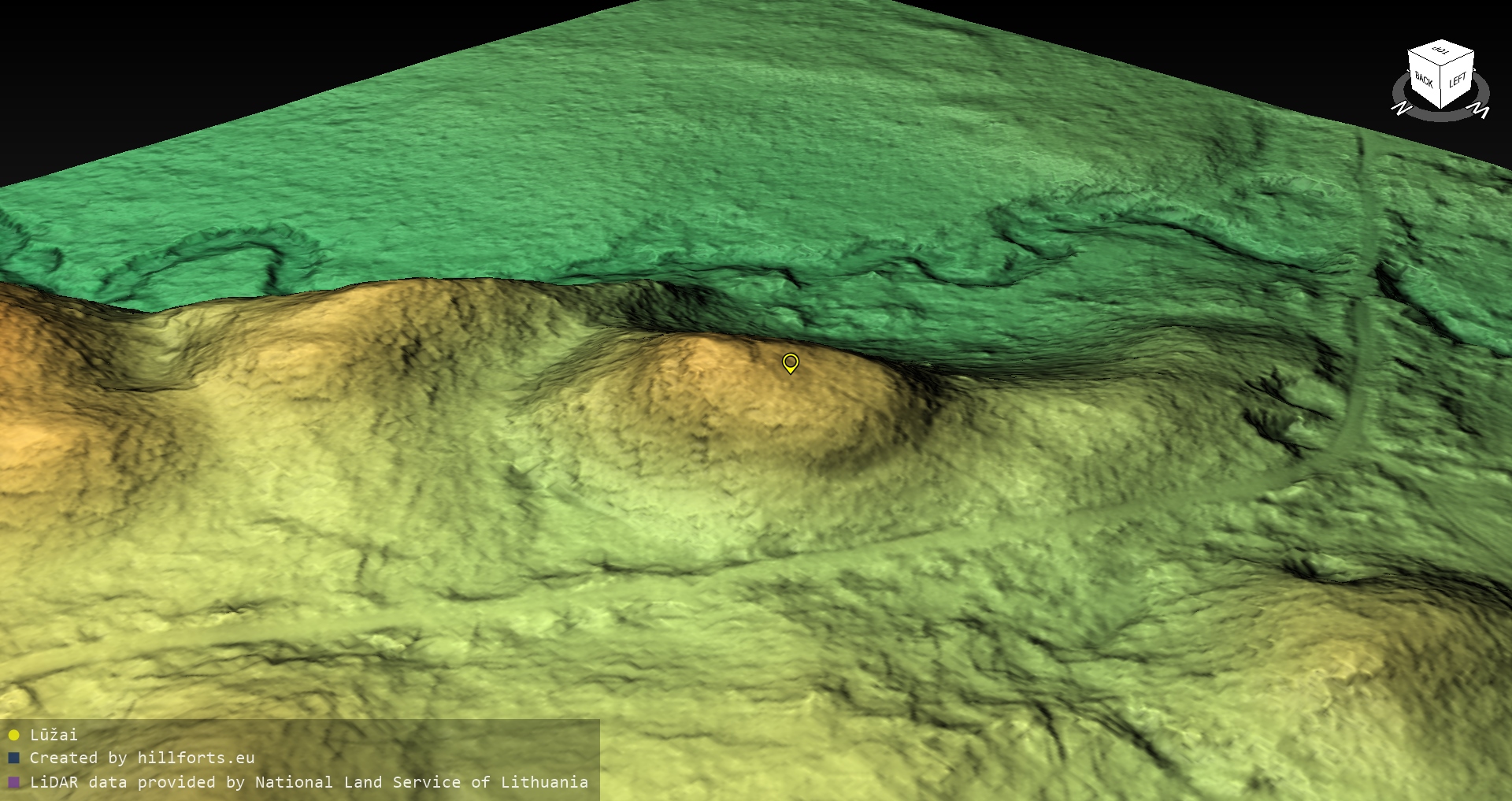 Latvijas pilskalnu 3D modeļi, kas veidoti no brīvpieejas LIDAR datiem LĢIA vietnē.