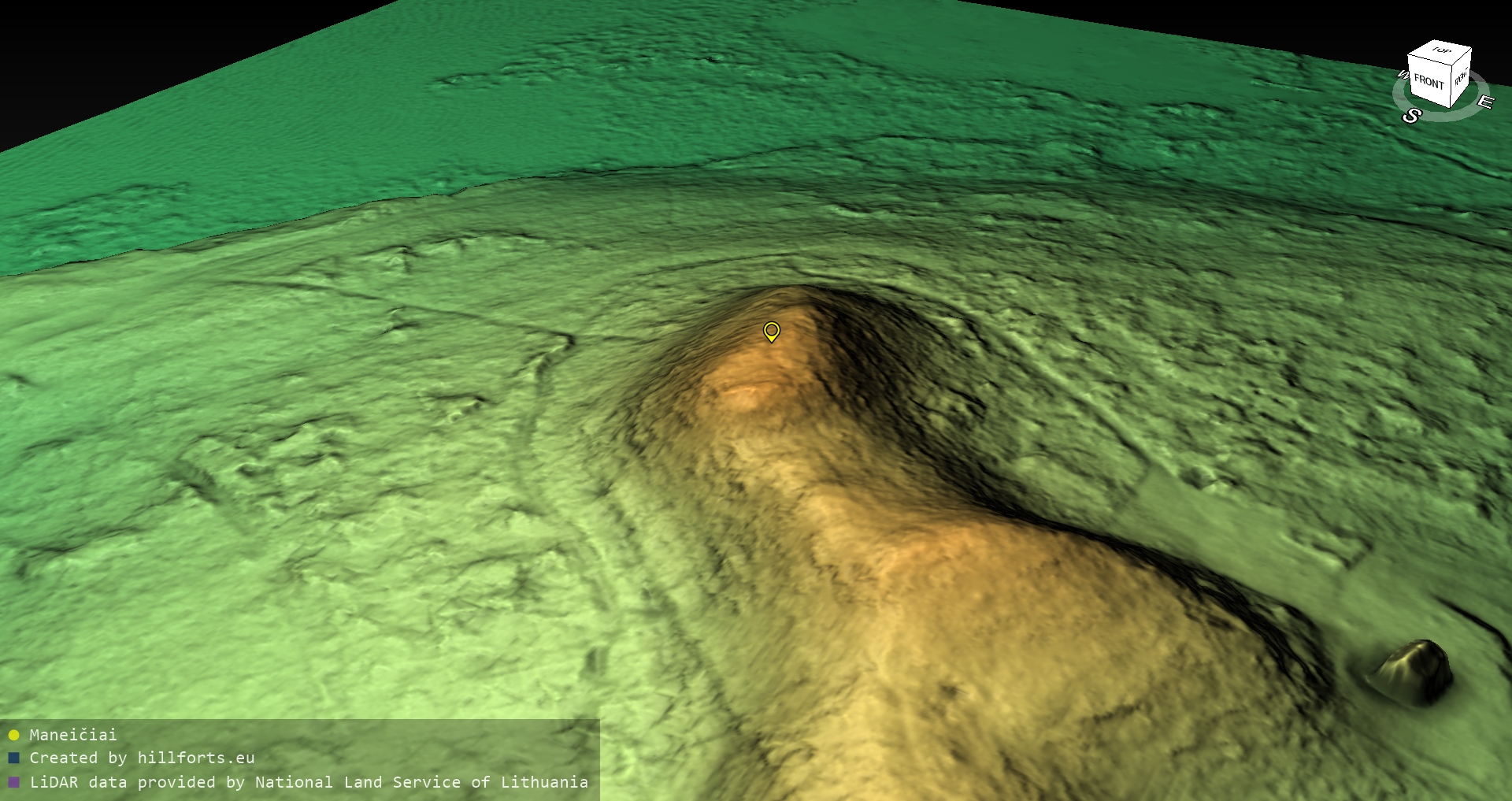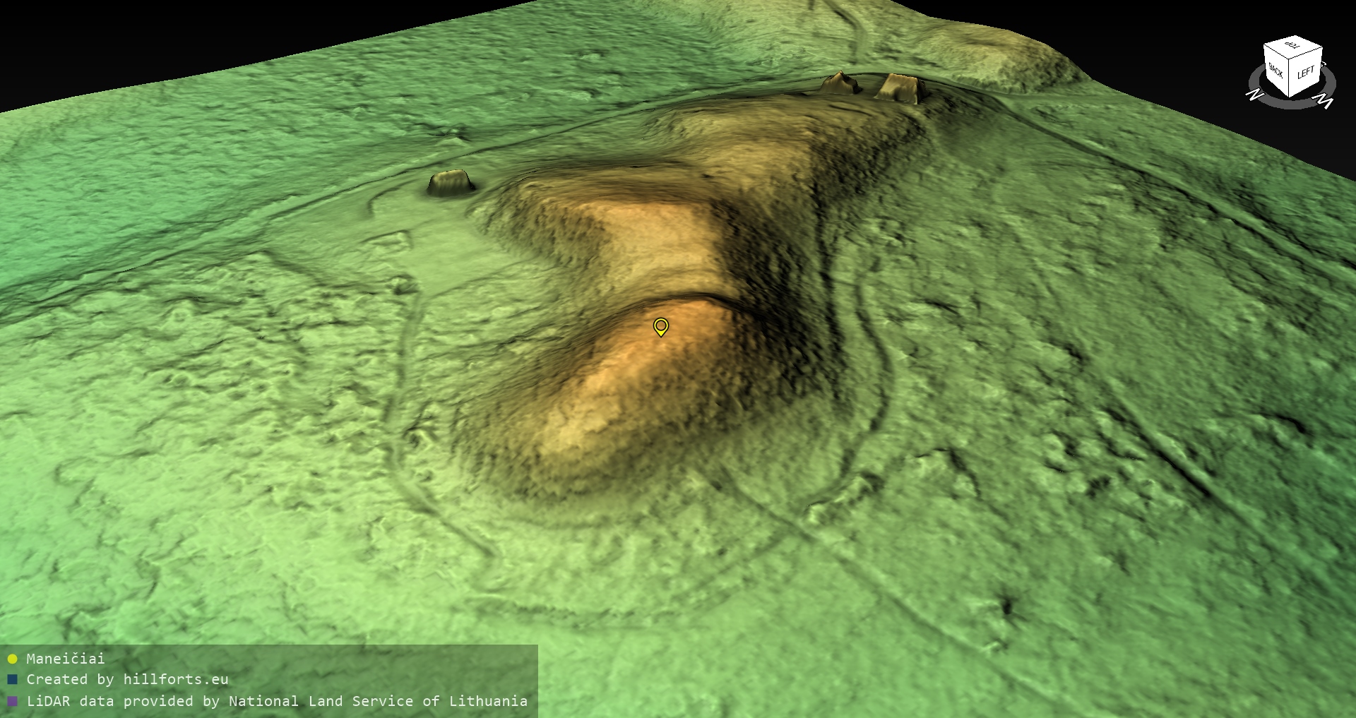 Latvijas pilskalnu 3D modeļi, kas veidoti no brīvpieejas LIDAR datiem LĢIA vietnē.
