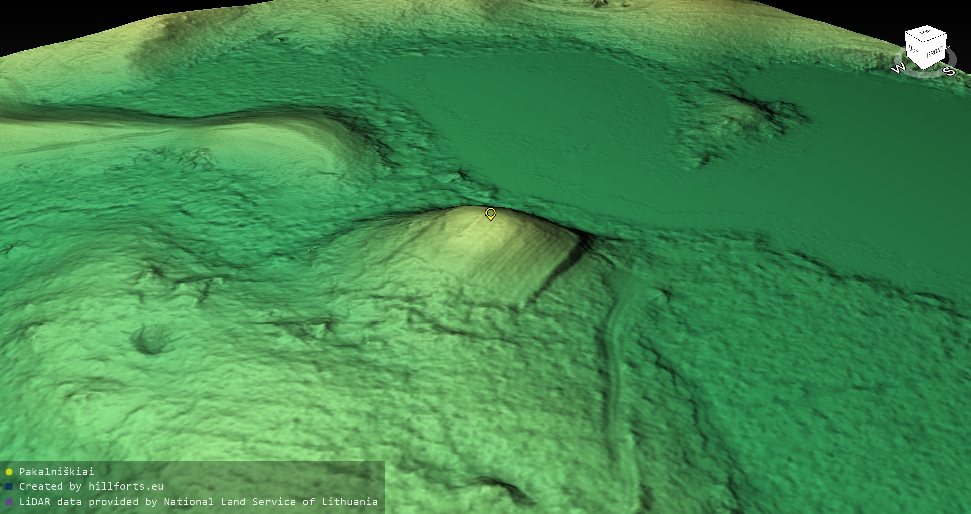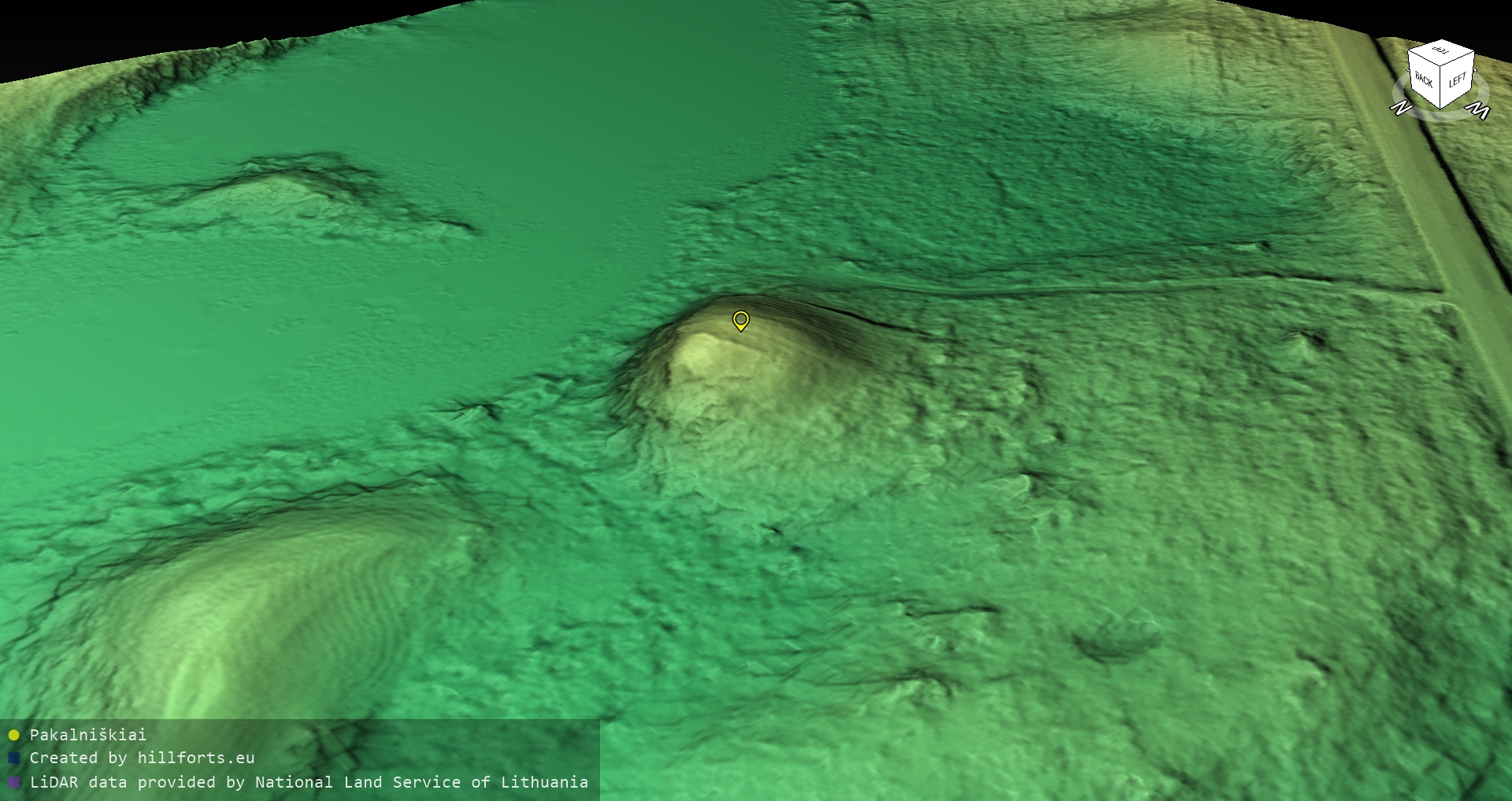 Latvijas pilskalnu 3D modeļi, kas veidoti no brīvpieejas LIDAR datiem LĢIA vietnē.