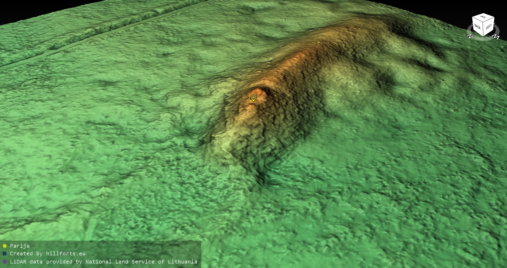 Latvijas pilskalnu 3D modeļi, kas veidoti no brīvpieejas LIDAR datiem LĢIA vietnē.