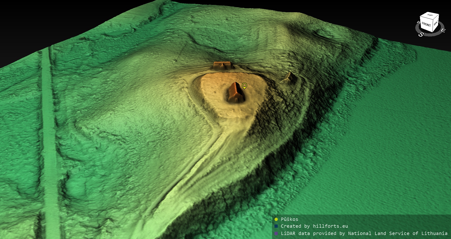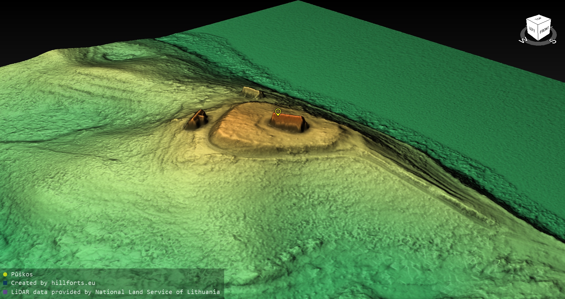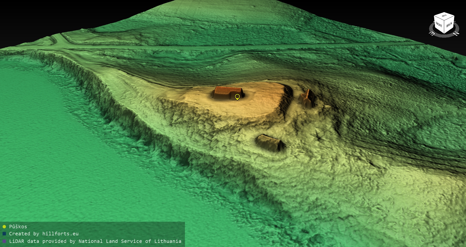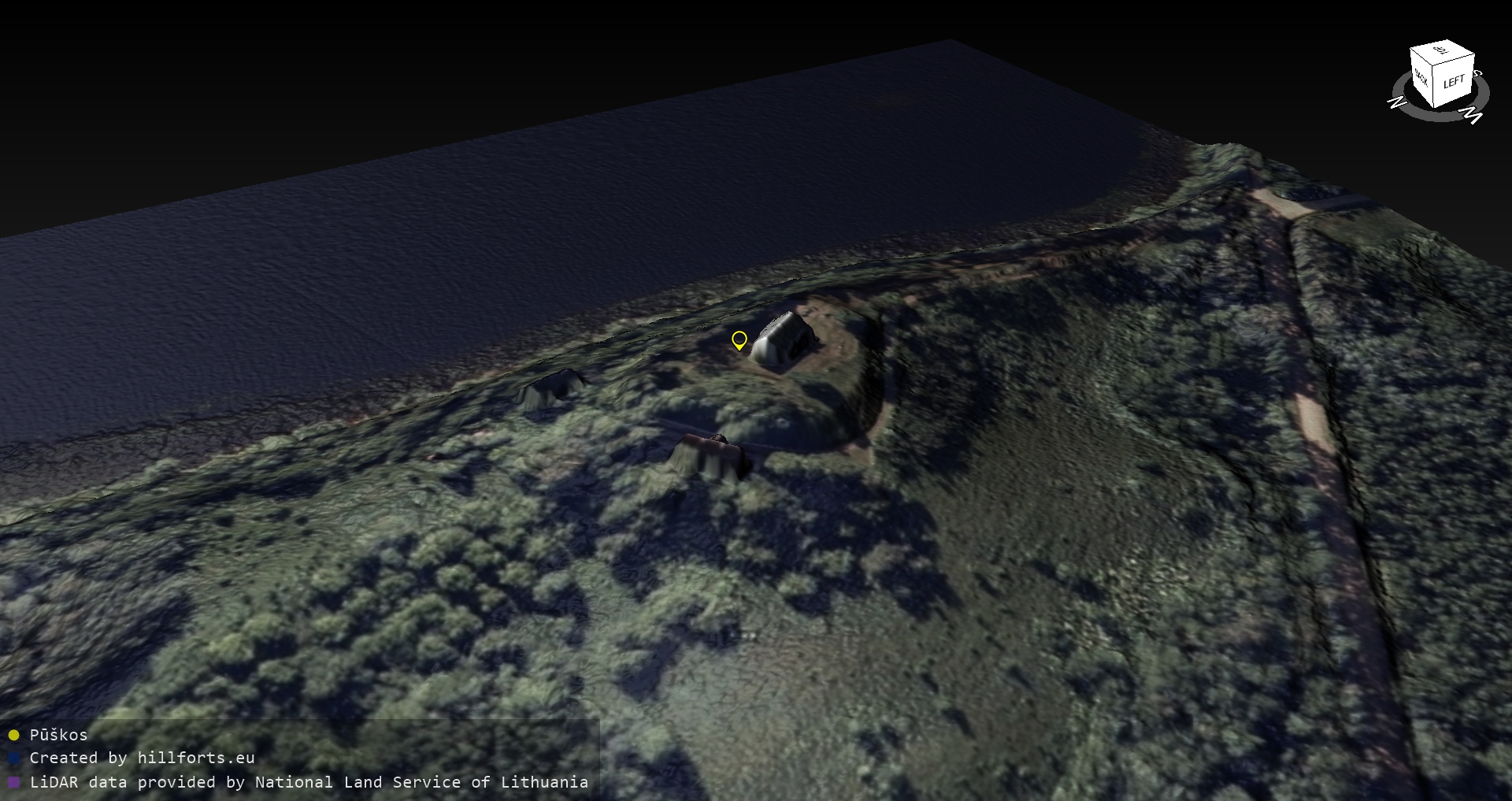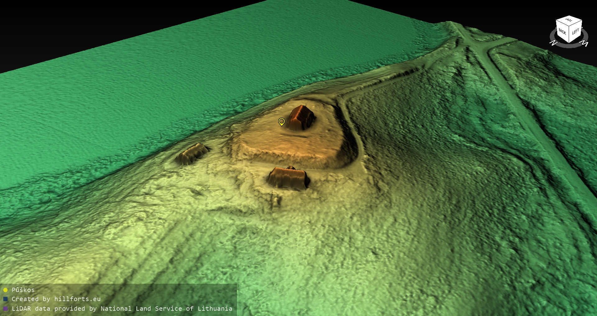 Latvijas pilskalnu 3D modeļi, kas veidoti no brīvpieejas LIDAR datiem LĢIA vietnē.