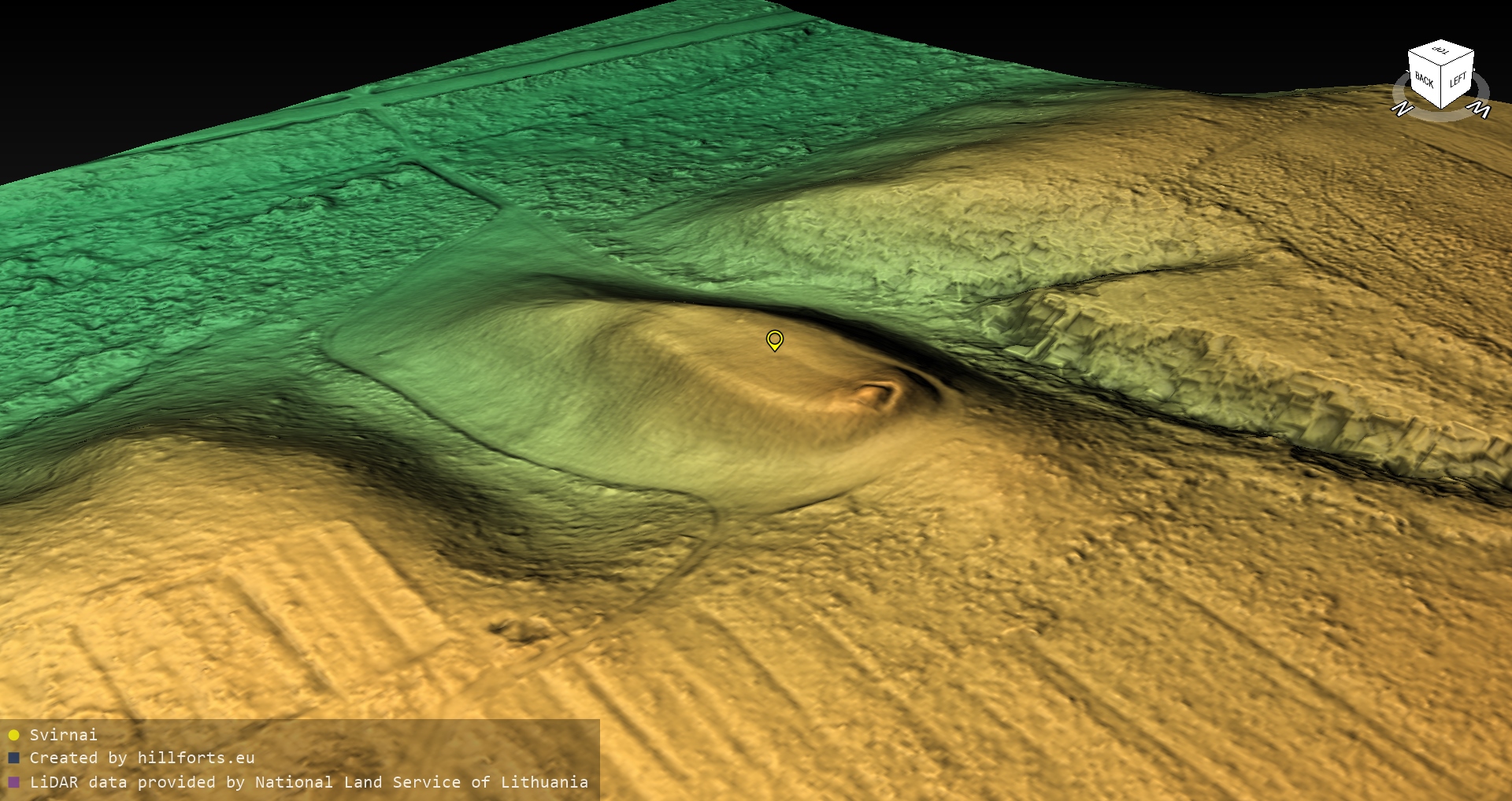 Latvijas pilskalnu 3D modeļi, kas veidoti no brīvpieejas LIDAR datiem LĢIA vietnē.