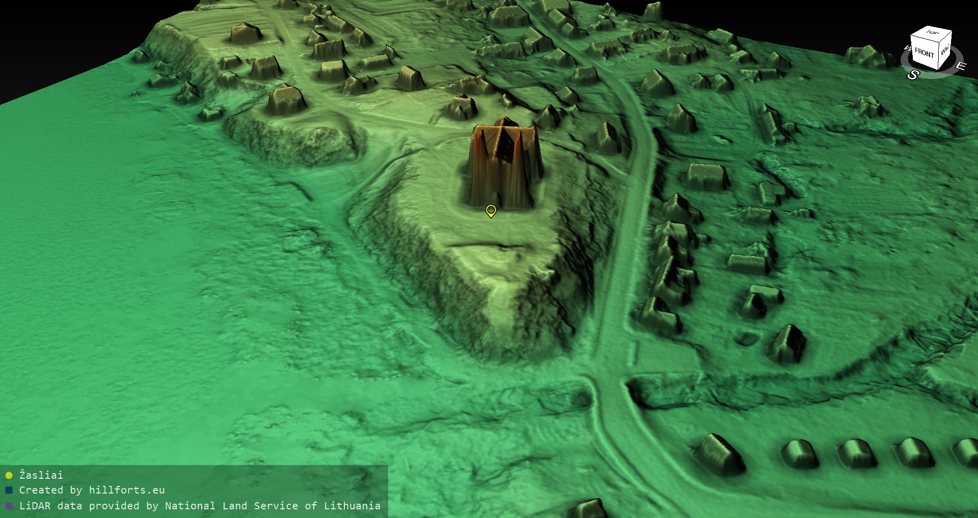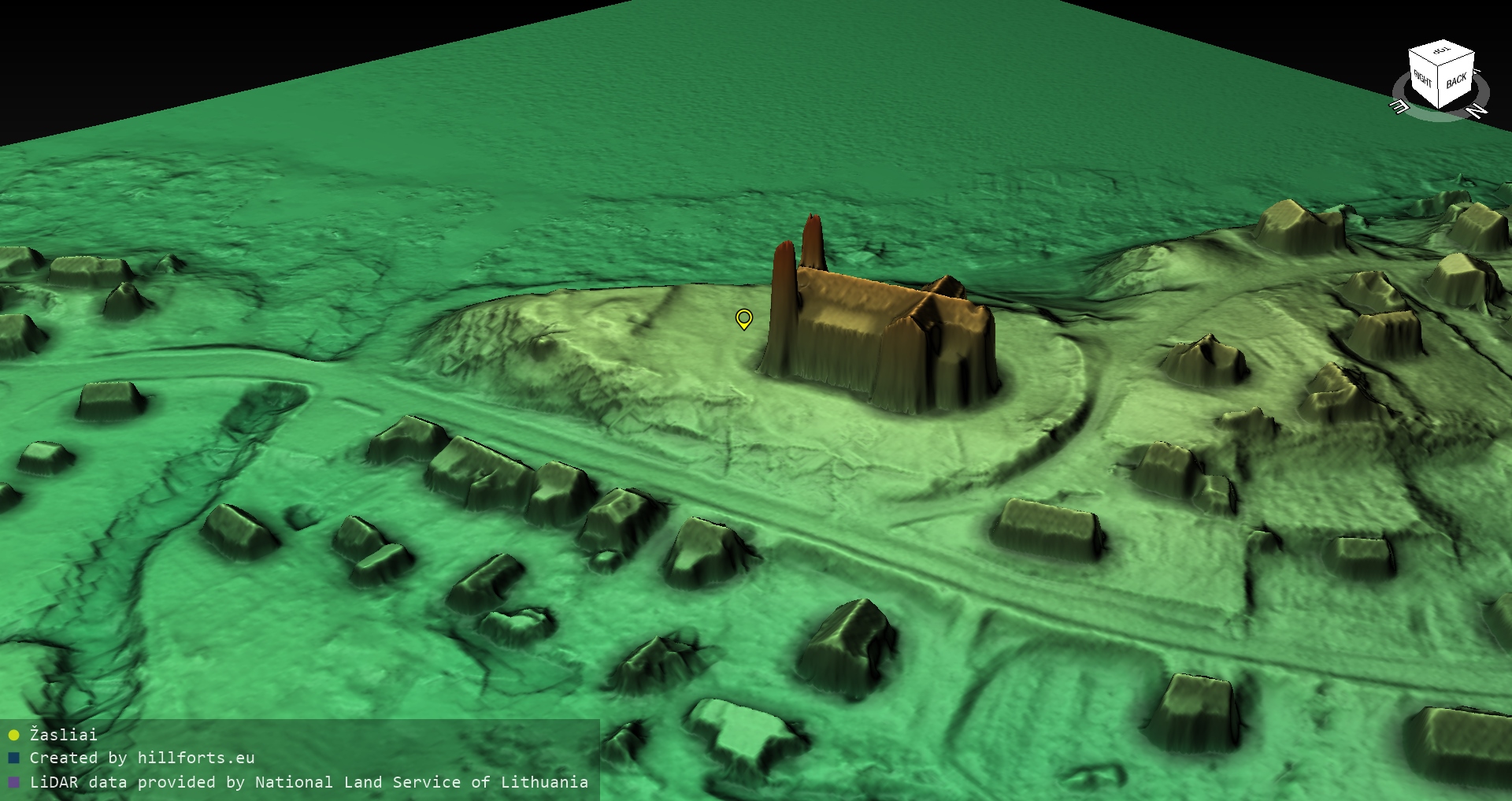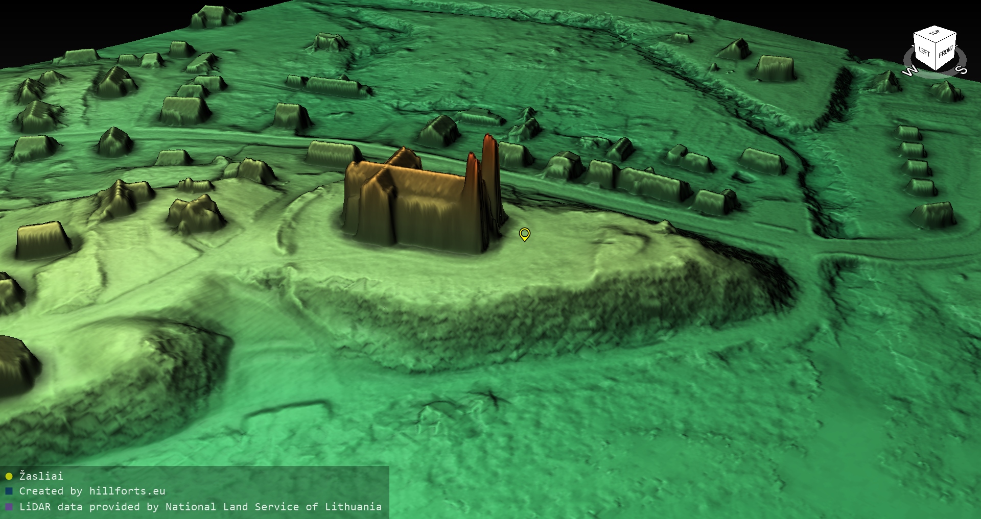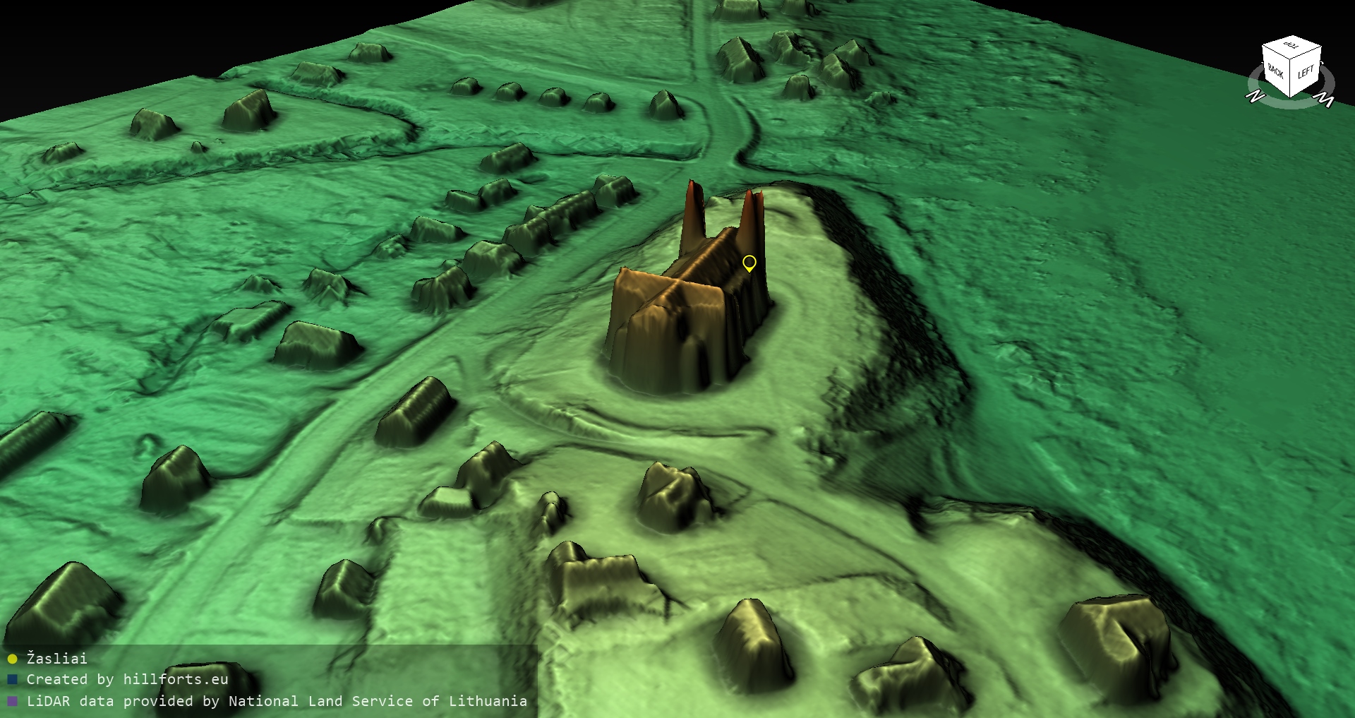 Latvijas pilskalnu 3D modeļi, kas veidoti no brīvpieejas LIDAR datiem LĢIA vietnē.