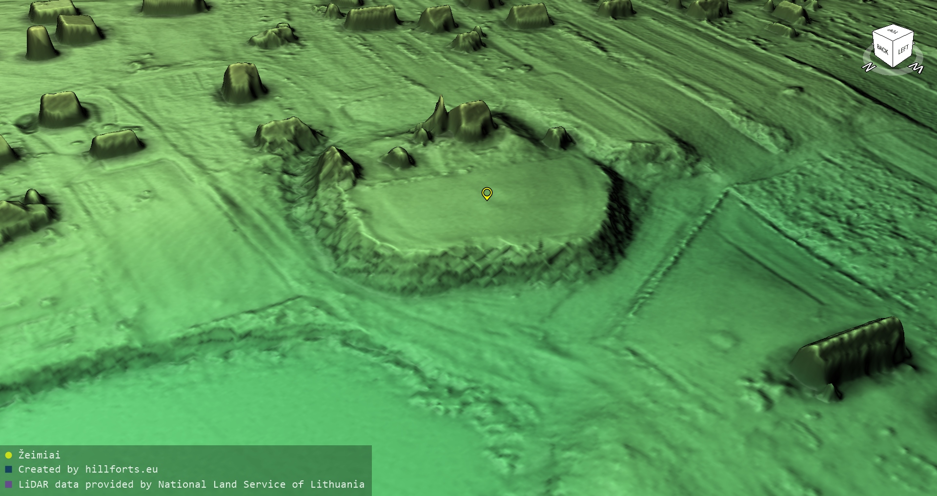 Latvijas pilskalnu 3D modeļi, kas veidoti no brīvpieejas LIDAR datiem LĢIA vietnē.