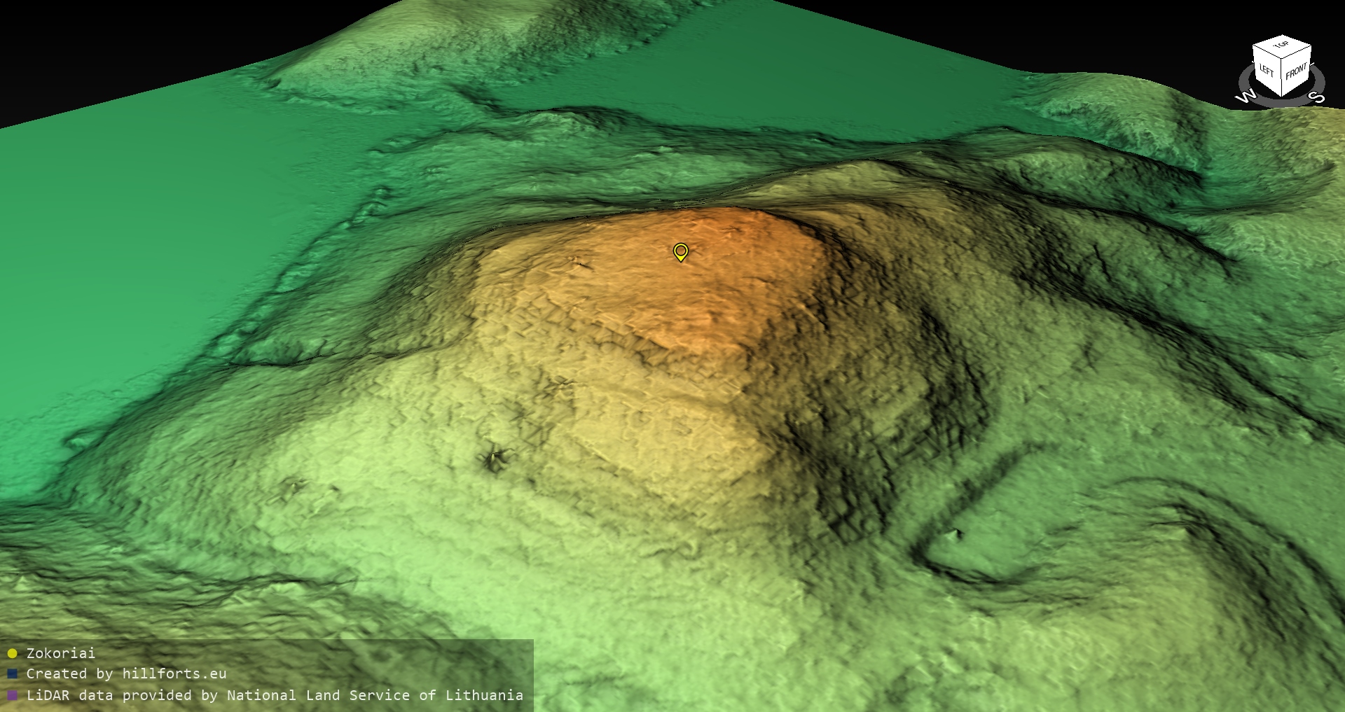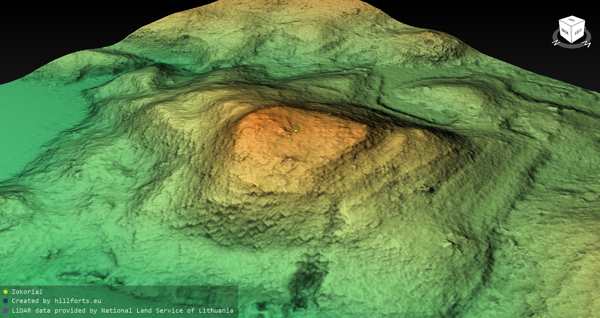 Latvijas pilskalnu 3D modeļi, kas veidoti no brīvpieejas LIDAR datiem LĢIA vietnē.