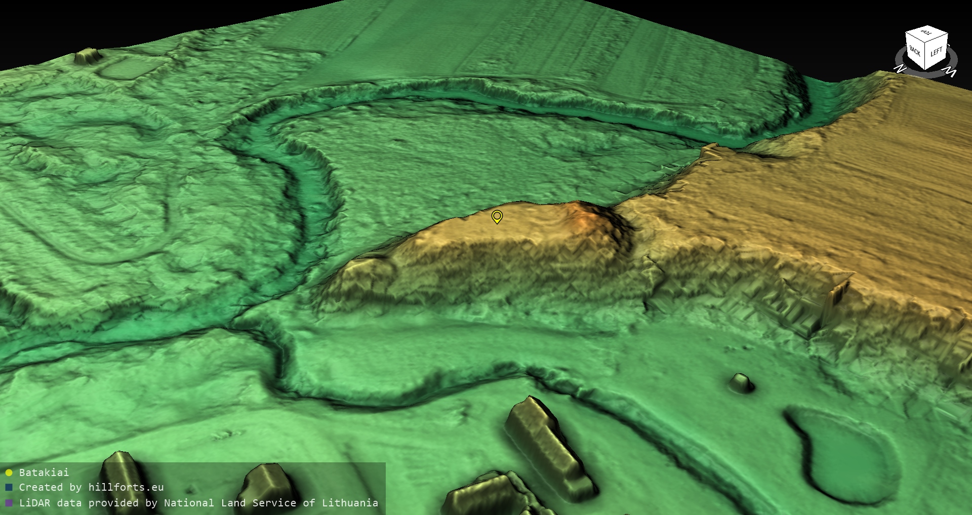Latvijas pilskalnu 3D modeļi, kas veidoti no brīvpieejas LIDAR datiem LĢIA vietnē.