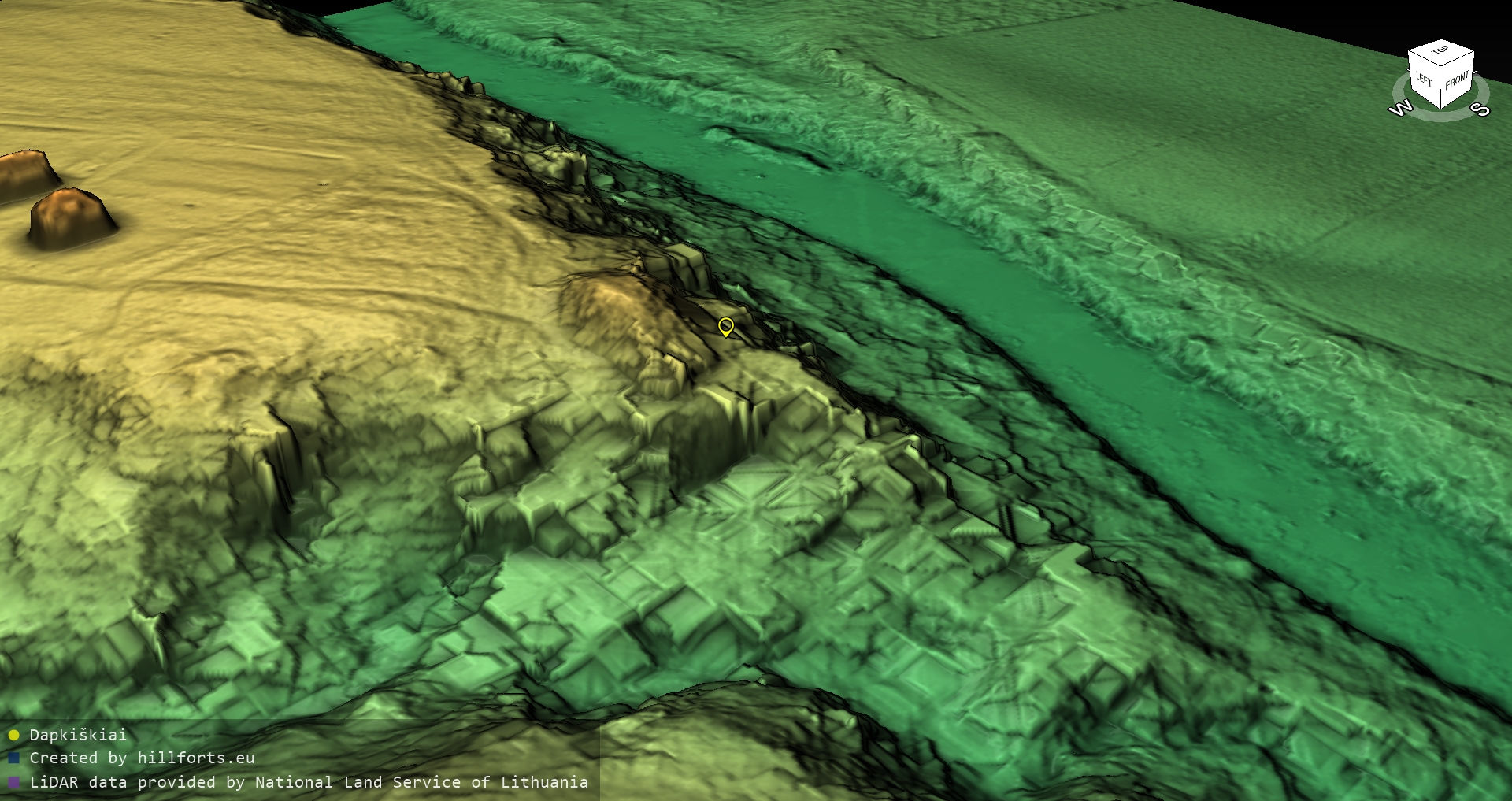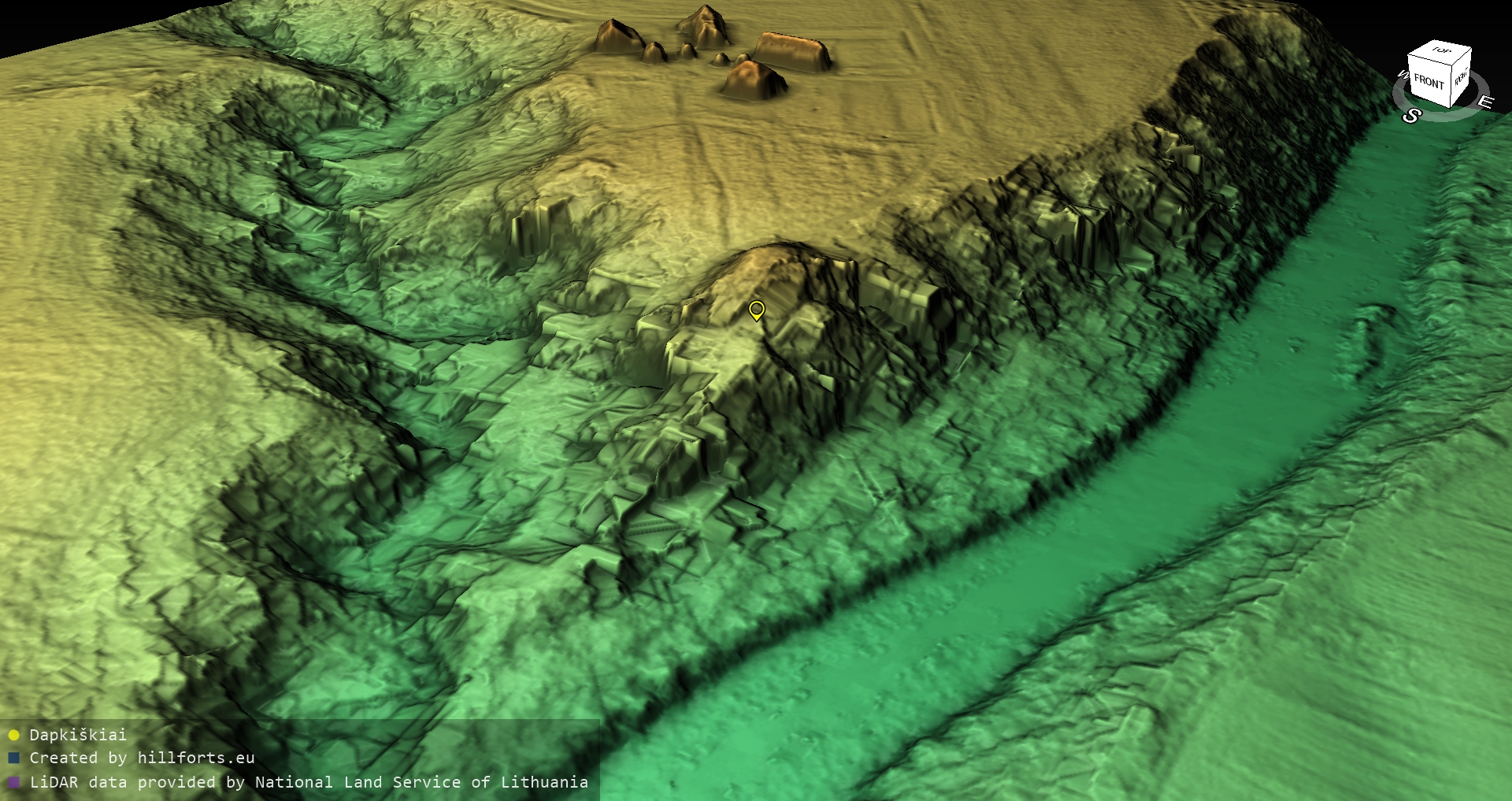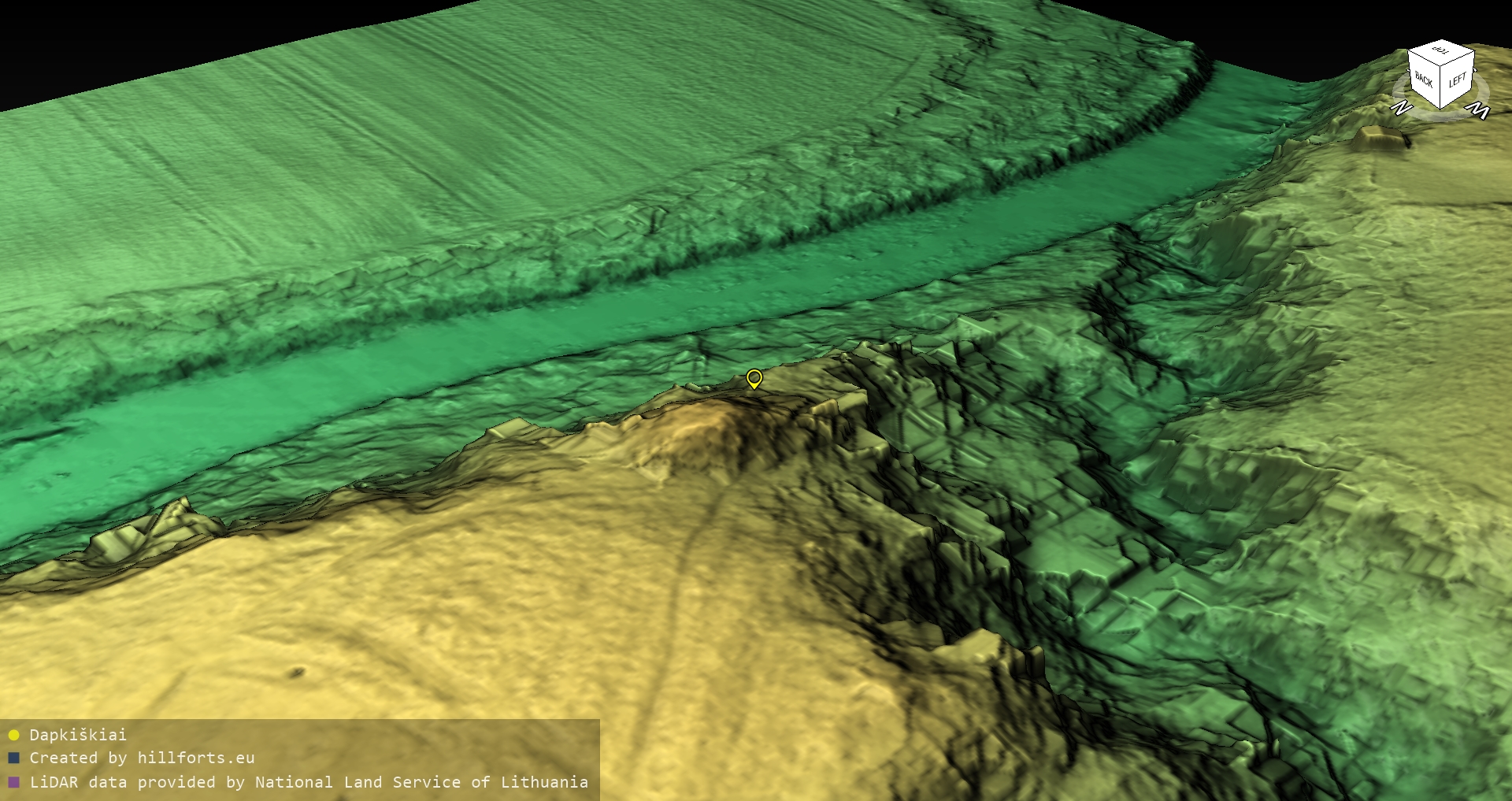 Latvijas pilskalnu 3D modeļi, kas veidoti no brīvpieejas LIDAR datiem LĢIA vietnē.
