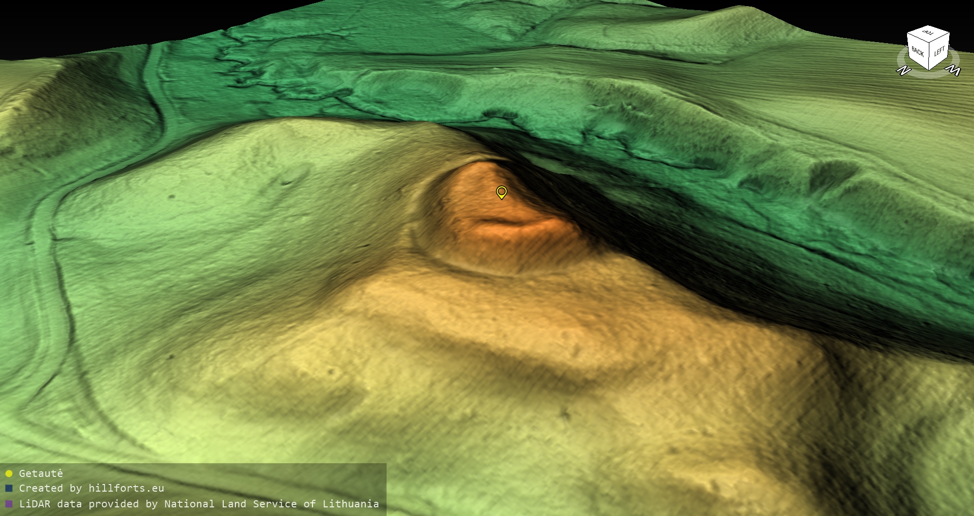 Latvijas pilskalnu 3D modeļi, kas veidoti no brīvpieejas LIDAR datiem LĢIA vietnē.