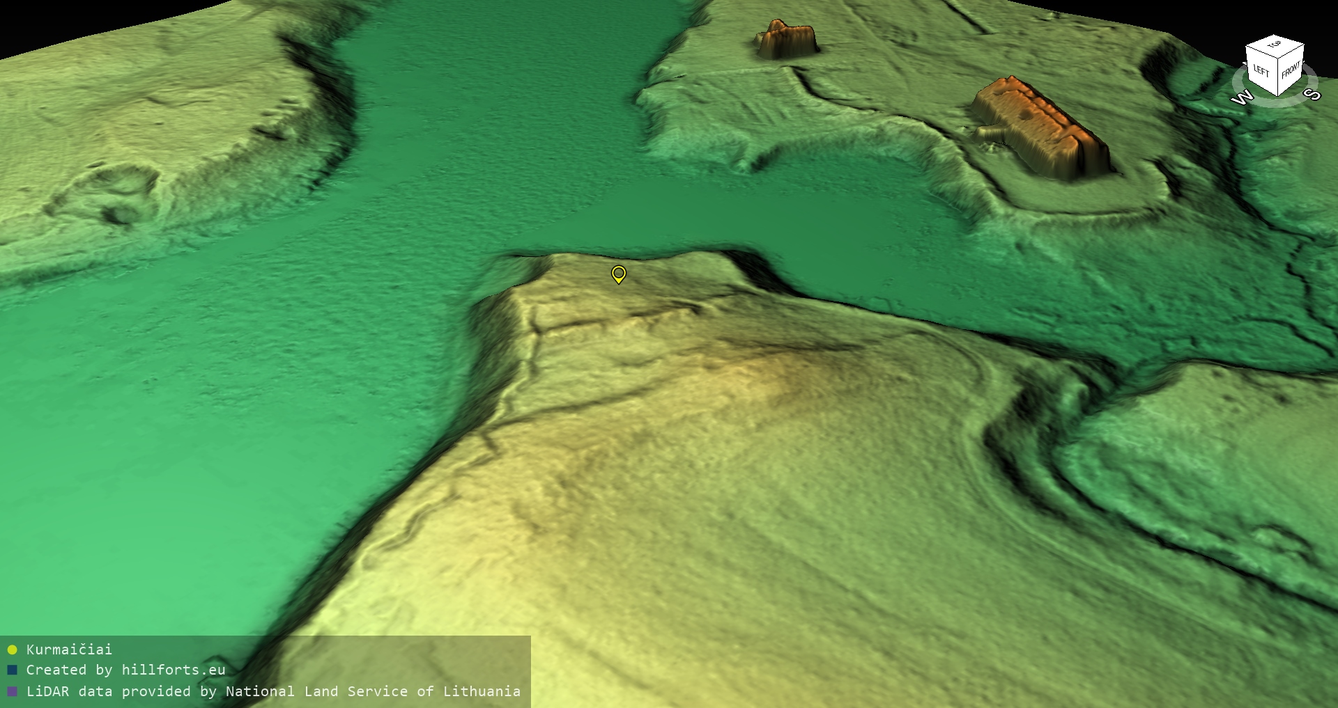 Latvijas pilskalnu 3D modeļi, kas veidoti no brīvpieejas LIDAR datiem LĢIA vietnē.