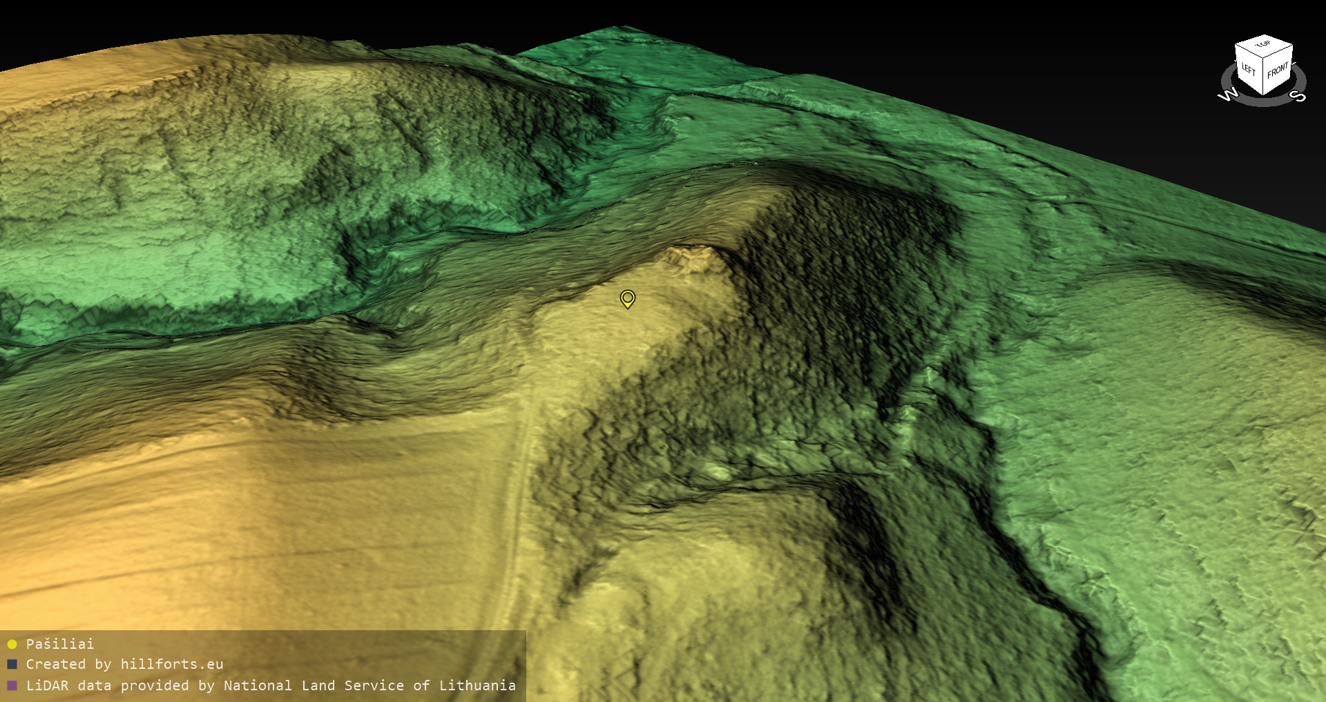 Latvijas pilskalnu 3D modeļi, kas veidoti no brīvpieejas LIDAR datiem LĢIA vietnē.