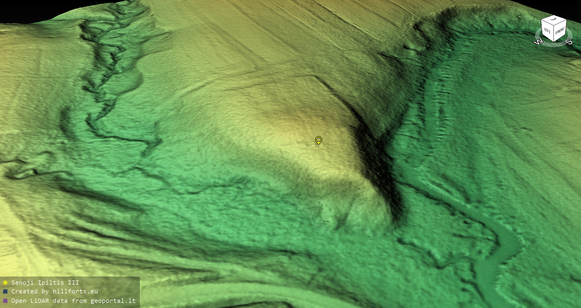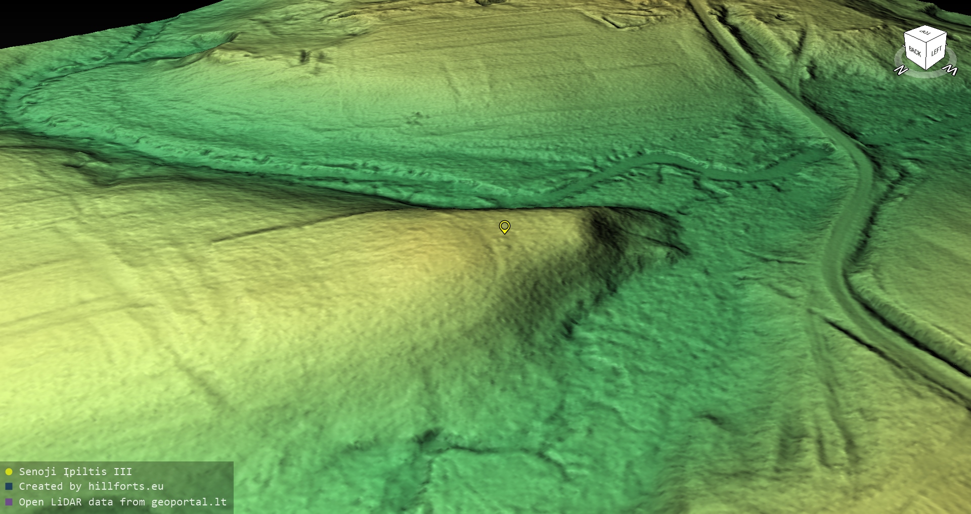 Latvijas pilskalnu 3D modeļi, kas veidoti no brīvpieejas LIDAR datiem LĢIA vietnē.
