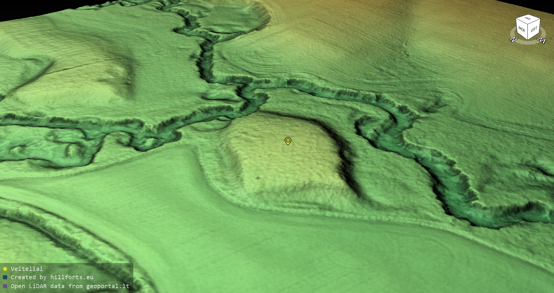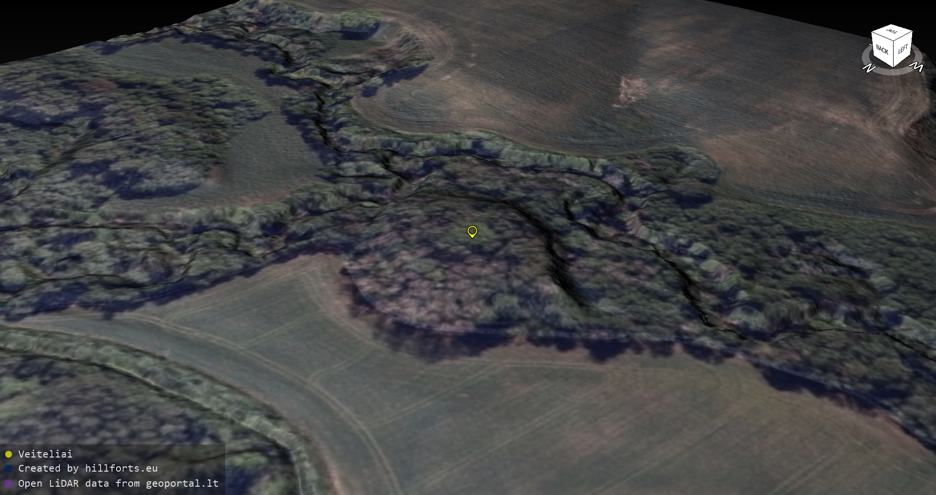 Latvijas pilskalnu 3D modeļi, kas veidoti no brīvpieejas LIDAR datiem LĢIA vietnē.