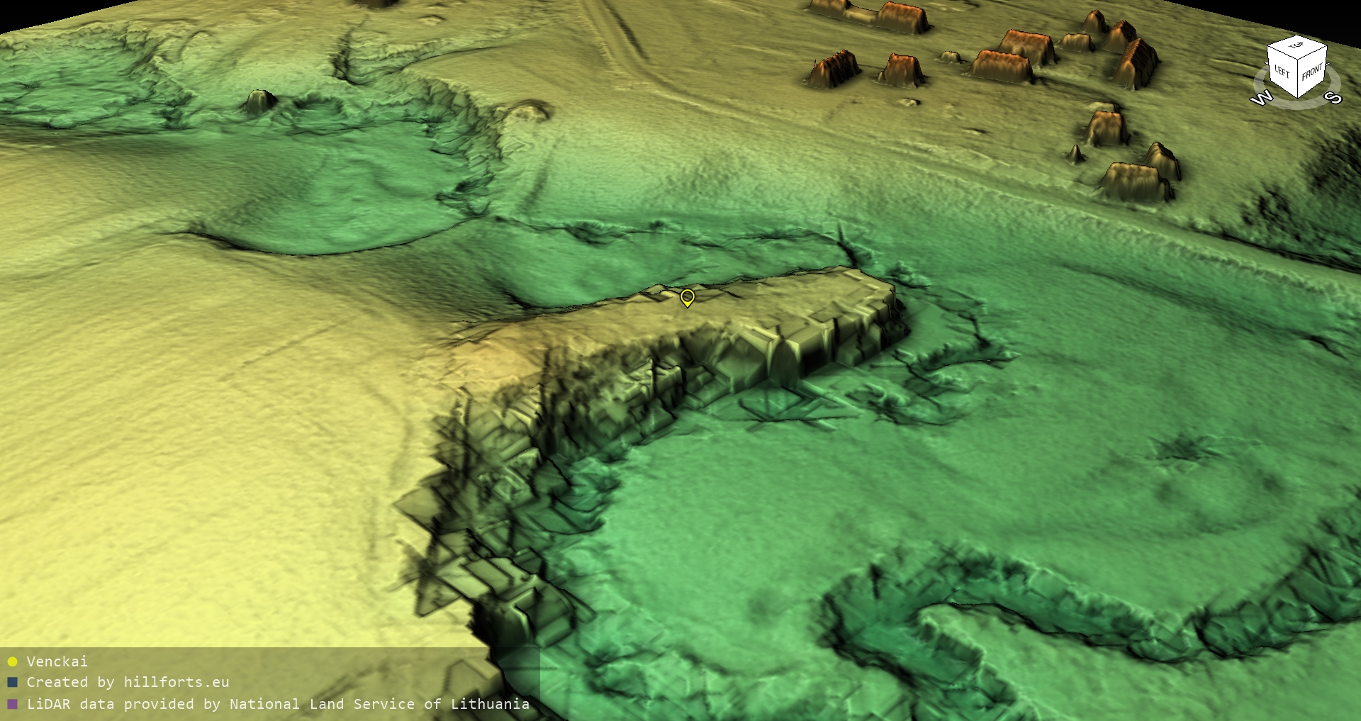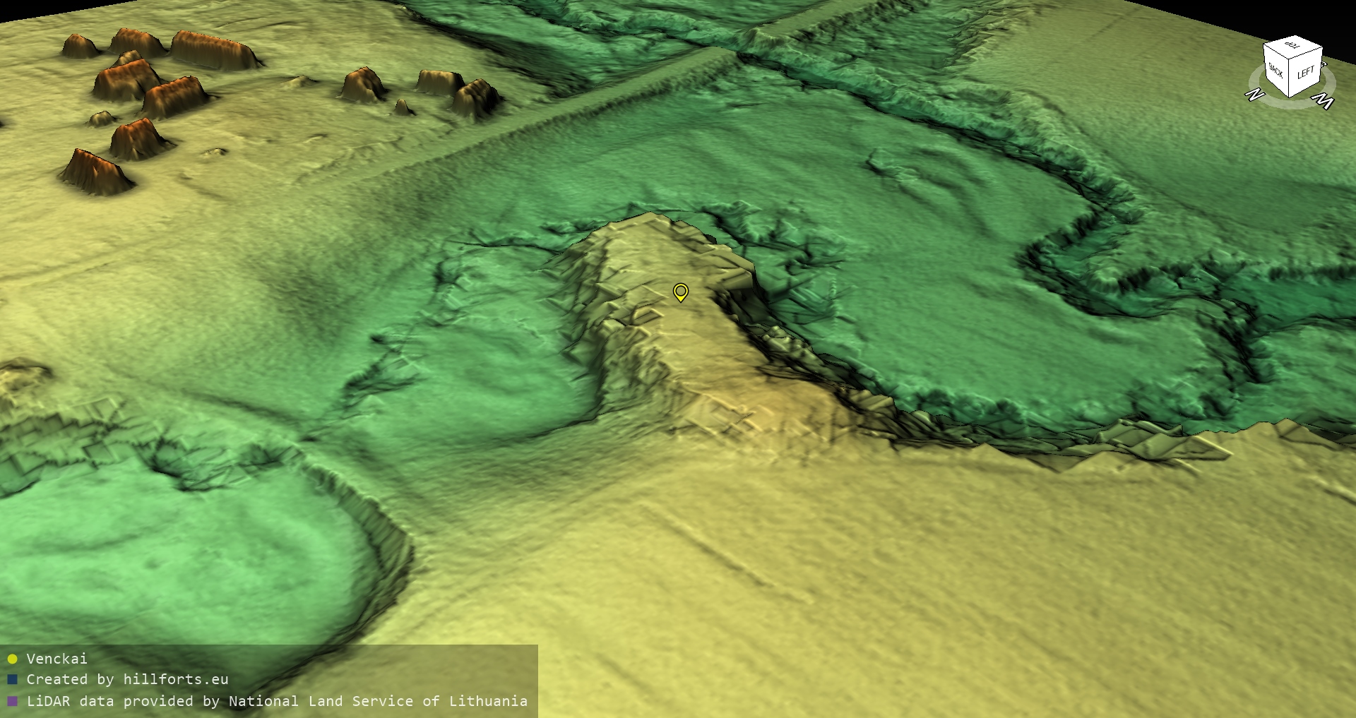 Latvijas pilskalnu 3D modeļi, kas veidoti no brīvpieejas LIDAR datiem LĢIA vietnē.